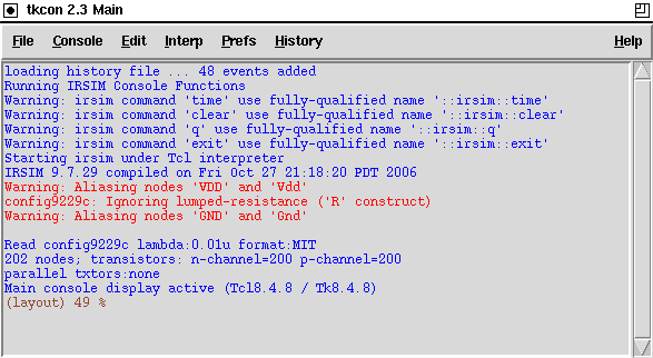 The IRSIM command console in the Tcl/Tk based version 9.7