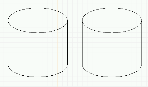 Creating a path object (solid cylinder): Two cylinders, the right one