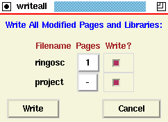 Save the ringosc schematic and symbol for the project by selecting "File->Write All" from the menu. The popup dialog looks like the following: