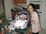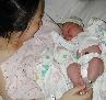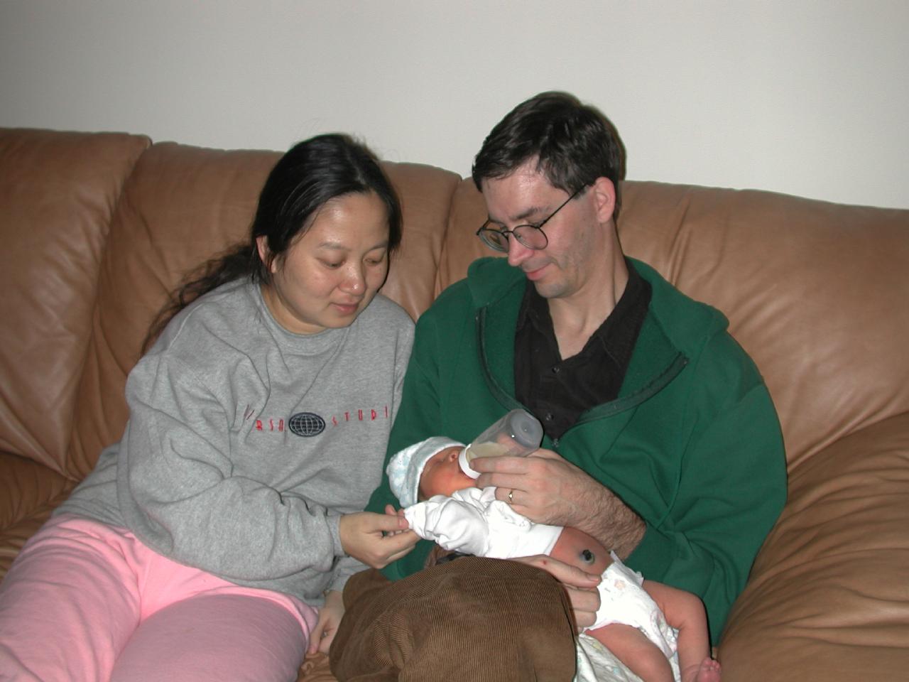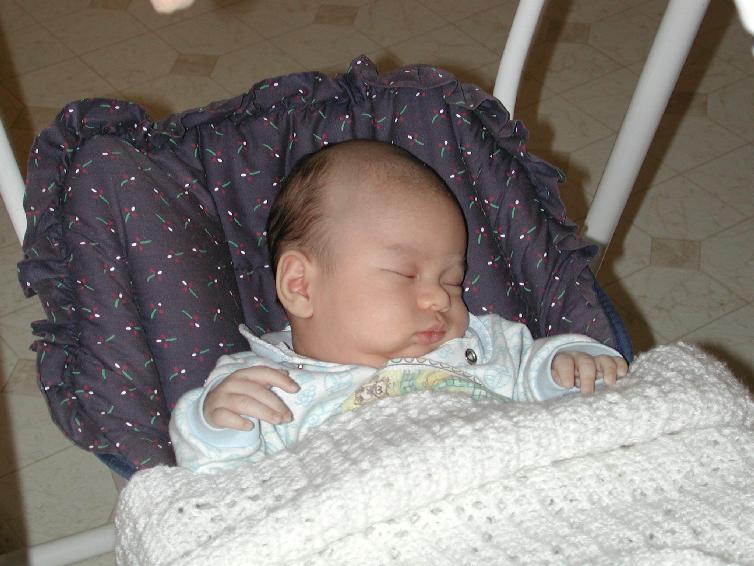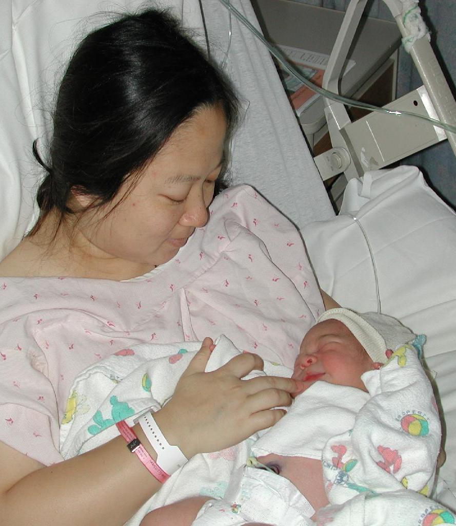 Linglan with William in the car seat, just arrived