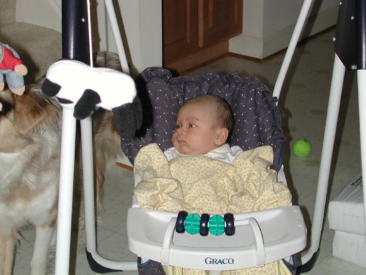 Tim bounces the baby.